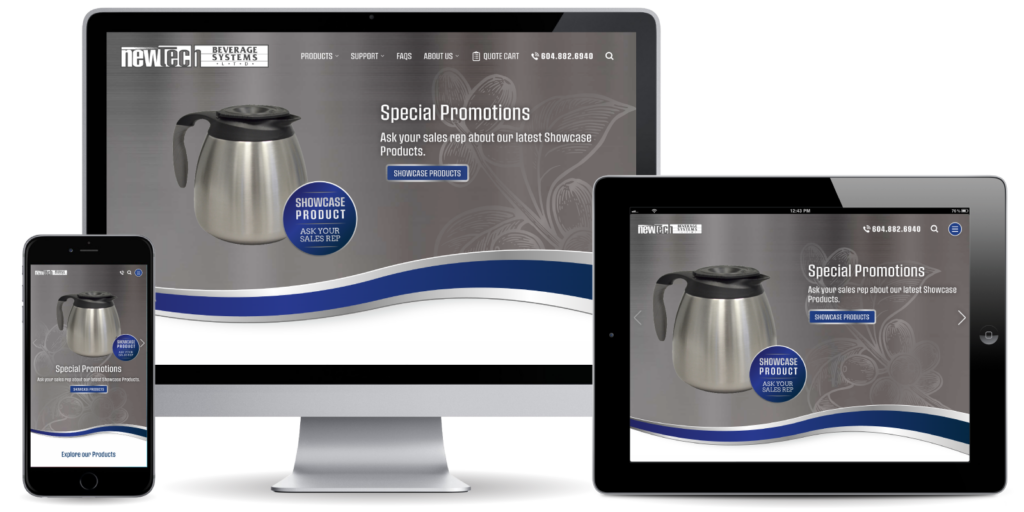 Our team added newer photos, easy-to-see product overviews, specifications, and detailed features to Newtech’s line of beverage products. By adding information, the website delivered better search results, and Newtech’s products are more likely to appear on external search engines.