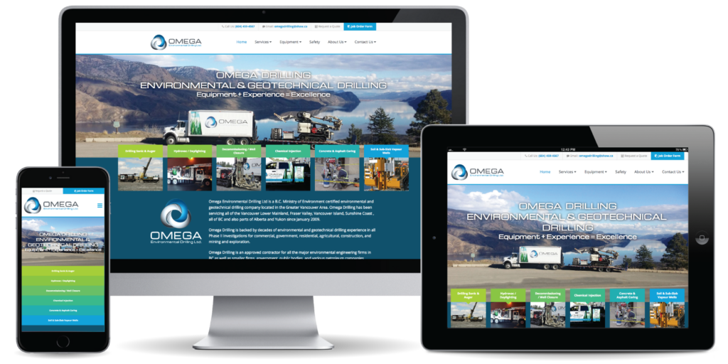 Featuring a clean design, the new Omega Drilling website uses blues from their logo. A secondary navigation that brings their services to the forefront uses bright greens and blues to reflect the environmental nature of their business. Detailed equipment specs and job order form helps keep their crews on track. Omega is based in Pitt Meadows, BC and provides environmental and geotechnical drilling services throughout British Columbia.