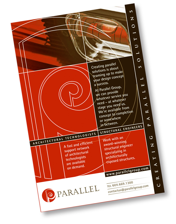 Open Client PortalThe logo is a stylized ‘P’ that looks like architectural drawings rolled into a tube. The chiselled font looks architectural and formal but also literally has parallel lines. Their end product is the architectural drawing not, the building design, so we often used just an outline of the logo and black and white photos with their marketing materials.