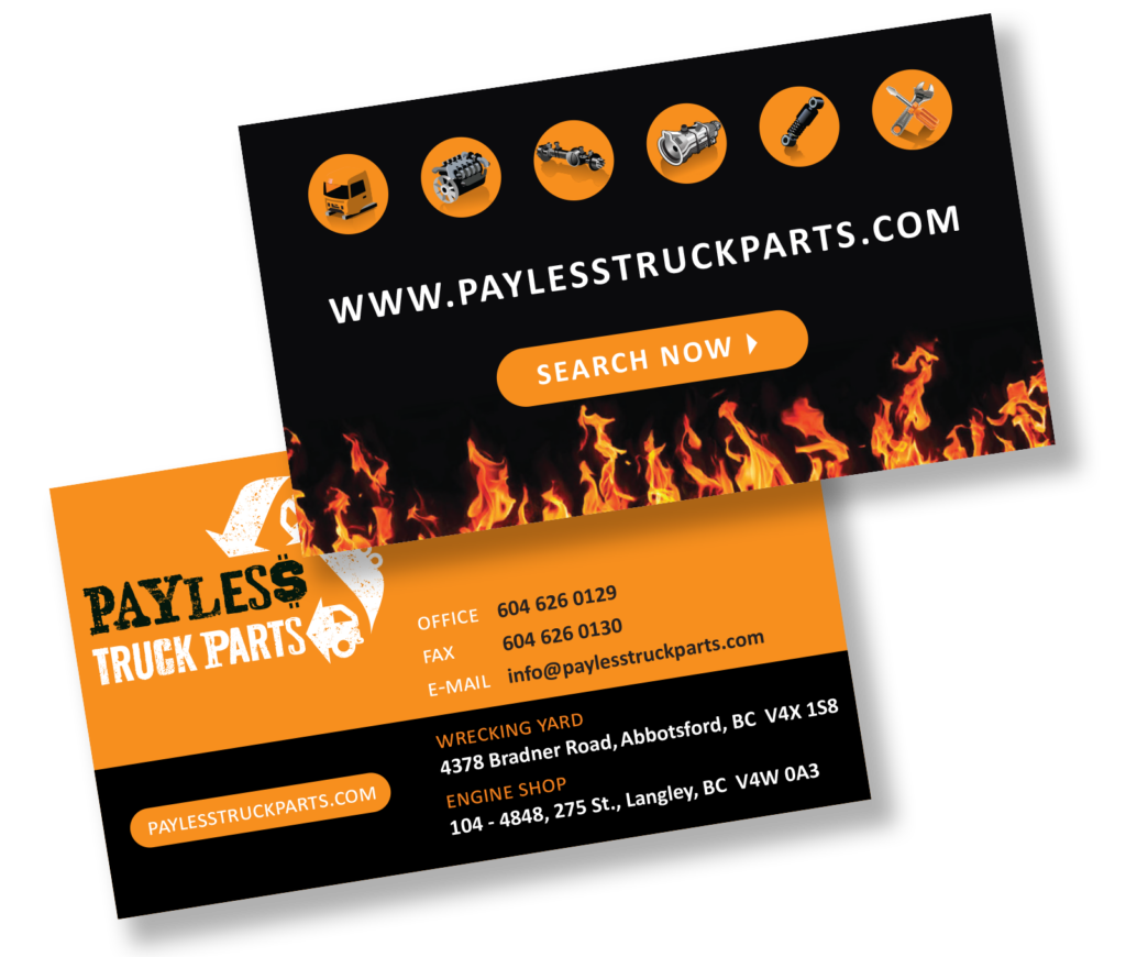 Open Client PortalWe designed new business cards and logo for Payless Truck Parts, an Abbotsford-based supplier and installer of used semi and commercial truck parts.