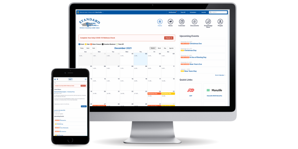 We have a ready-to-go company intranet template that provides a staff contact list, a shared calendar, a news area, a knowledge base and a documents library. Any custom programming can be added to this pre-built template. In this case, we added a form where staff could request time off, and managers can approve and deny the requests. The supervisors can then alter the schedule based on the requested time off.